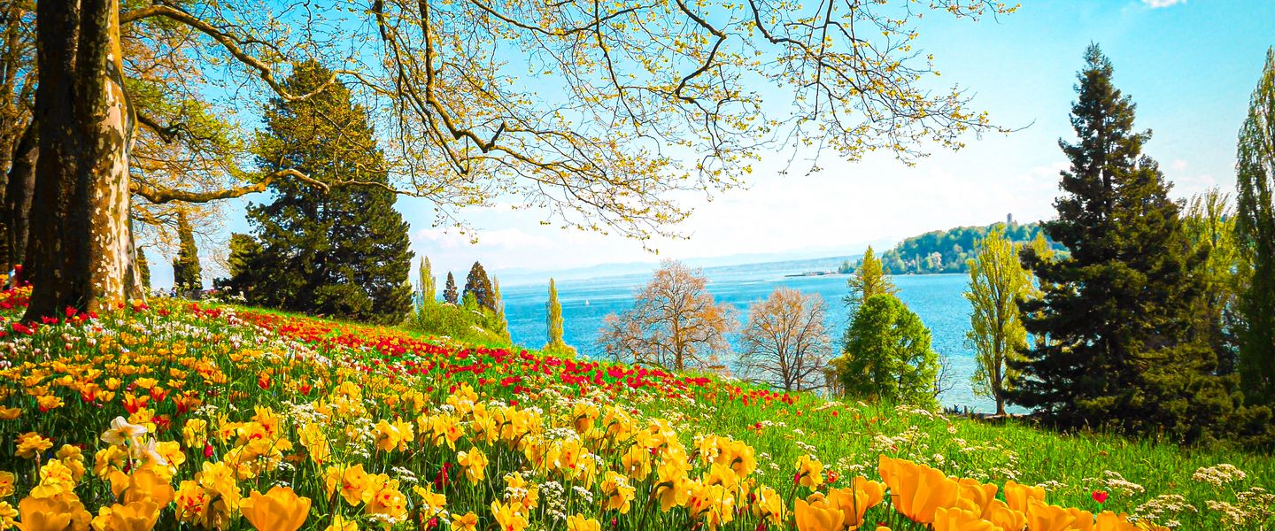 Entdecken Sie die Insel Mainau in voller Blütenpracht: Von bunten Tulpen im Frühling über duftende Rosen im Sommer bis zu leuchtenden Dahlien im Spätsommer. Genießen Sie kunstvolle Gärten, den Bodenseeblick und entspannte Momente in charmanten Cafés.