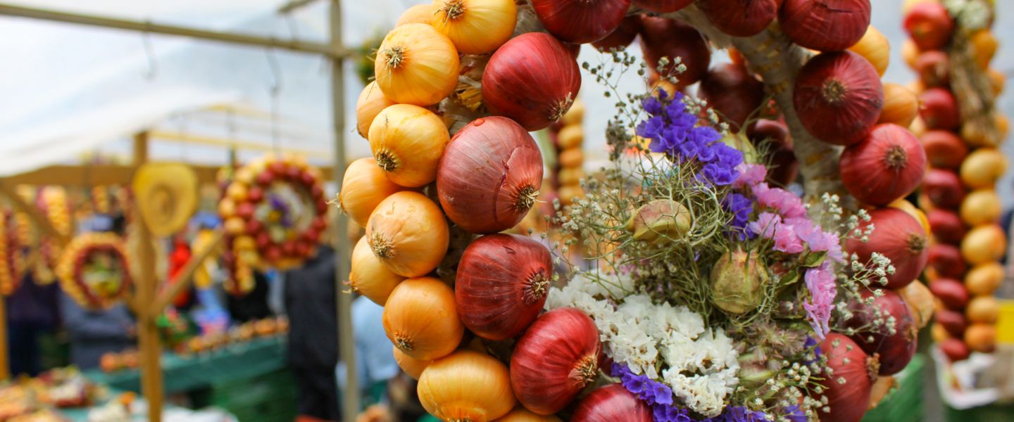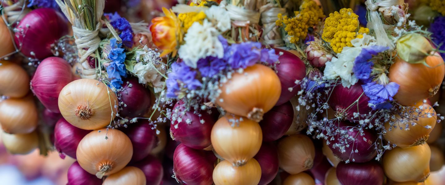 Seit 1976 ist das Büllefest auf der Höri am Bodensee eine liebgewonnene Tradition. An über 40 liebevoll dekorierten Ständen präsentieren die Einwohner von Moos kunstvoll geflochtene Zöpfe und Kränze aus den roten und gelben Büllen. Die Zwiebeln werden bemalt, verziert oder zu kreativen Gebilden verarbeitet – ein Fest für Augen und Sinne!