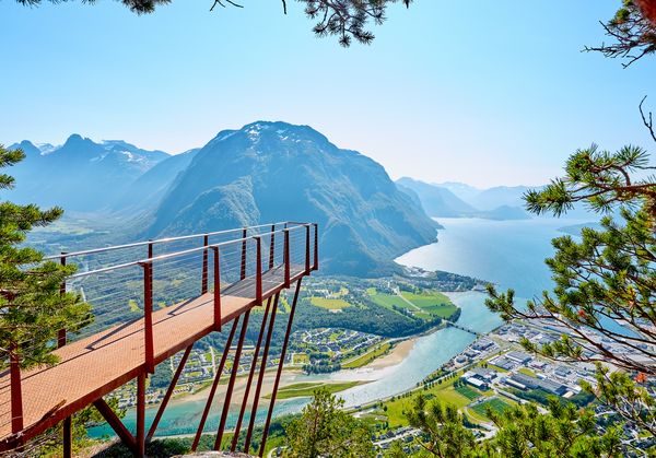 Andalsnes ist eine Stadt in Norwegen, die sich in der Region Møre og Romsdal befindet. Sie liegt am Romsdalsfjord und ist bekannt für ihre atemberaubende Natur, die von hohen Bergen, tiefen Tälern und spektakulären Fjorden geprägt ist. Andalsnes ist berühmt als Ausgangspunkt für einige der beeindruckendsten Wanderungen und Naturerlebnisse in Norwegen, darunter die Romsdalseggen-Wanderung und die Trollstigen, eine der bekanntesten Touristenstraßen des Landes. Historisch gesehen war Andalsnes ein wichtiger Hafen und Handelsplatz, der im 19. Jahrhundert an Bedeutung gewann, als die Eisenbahnverbindung nach Dombås eröffnet wurde.