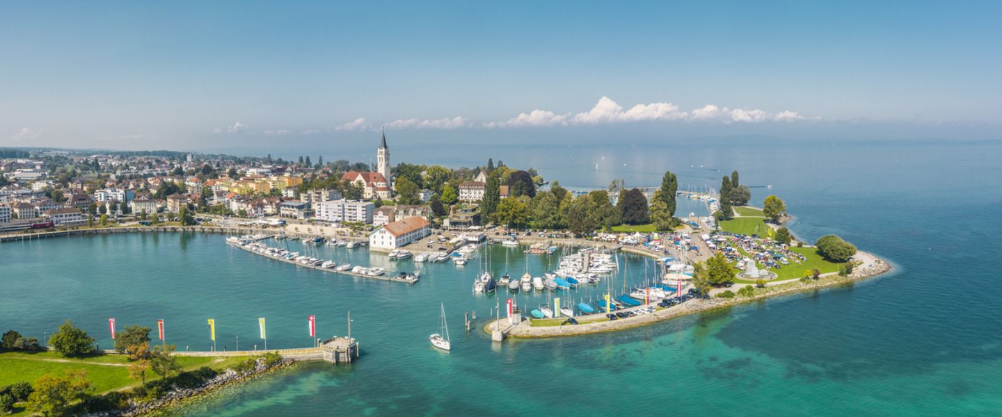 Der Bodensee liegt im Dreiländereck von Deutschland, Österreich und der Schweiz und erstreckt sich über eine Fläche von etwa 536 Quadratkilometern. Er wird von den Alpen im Süden und sanften Hügeln im Norden umgeben, was eine atemberaubende Kulisse bietet. Die wichtigsten Städte am Bodensee sind Konstanz, Friedrichshafen, Lindau und Bregenz, die alle leicht mit dem Auto, Zug oder Schiff erreichbar sind. Die geografische Lage des Bodensees macht ihn zu einem zentralen Punkt für Ausflüge in die umliegenden Regionen, darunter die Alpen und das Oberschwaben. Die hervorragende Anbindung an das Verkehrsnetz und die Vielzahl an Freizeitmöglichkeiten machen den Bodensee zu einem idealen Ziel für Tagesausflüge und längere Auf