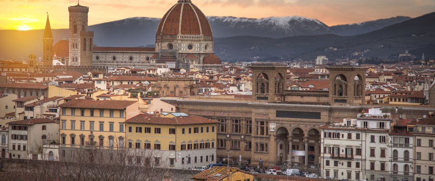 Florenz ist die Hauptstadt der Toskana in Italien und gilt als eine der bedeutendsten Städte der Kunst und Kultur weltweit. Die Stadt liegt im zentralen Teil Italiens und ist berühmt für ihre Rolle als Wiege der Renaissance, einer kulturellen Bewegung, die im 14. Jahrhundert begann und die Kunst, Wissenschaft und Philosophie revolutionierte. Florenz ist bekannt für seine beeindruckende Architektur, darunter die Kathedrale Santa Maria del Fiore mit ihrer markanten Kuppel von Filippo Brunelleschi, sowie für bedeutende Kunstwerke von Meistern wie Michelangelo, Botticelli und Leonardo da Vinci. Die Stadt hat eine reiche Geschichte, die bis in die römische Zeit zurückreicht, und war im Mittelalter ein wichtiges Handels- und Finanzzentrum.