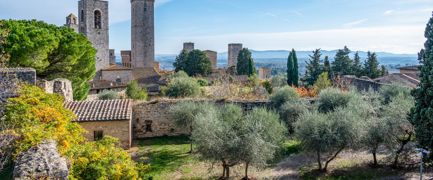 San Gimignano ist eine historische Stadt in Italien, die in der Region Toskana liegt, genauer gesagt in der Provinz Siena. Die Stadt befindet sich auf einem Hügel und ist bekannt für ihre beeindruckende Skyline, die von mittelalterlichen Türmen geprägt ist. San Gimignano wird oft als "Manhattan des Mittelalters" bezeichnet, da sie einst über 70 Türme hatte, von denen heute noch 14 erhalten sind. Die Stadt ist berühmt für ihre gut erhaltene Altstadt, die zum UNESCO-Weltkulturerbe gehört, sowie für ihre Kunst, Geschichte und die Produktion von hochwertigem Wein, insbesondere dem Vernaccia di San Gimignano. San Gimignano hat eine reiche Geschichte, die bis ins 3. Jahrhundert v. Chr. zurückreicht, als sie von den Etruskern gegründet wurde.