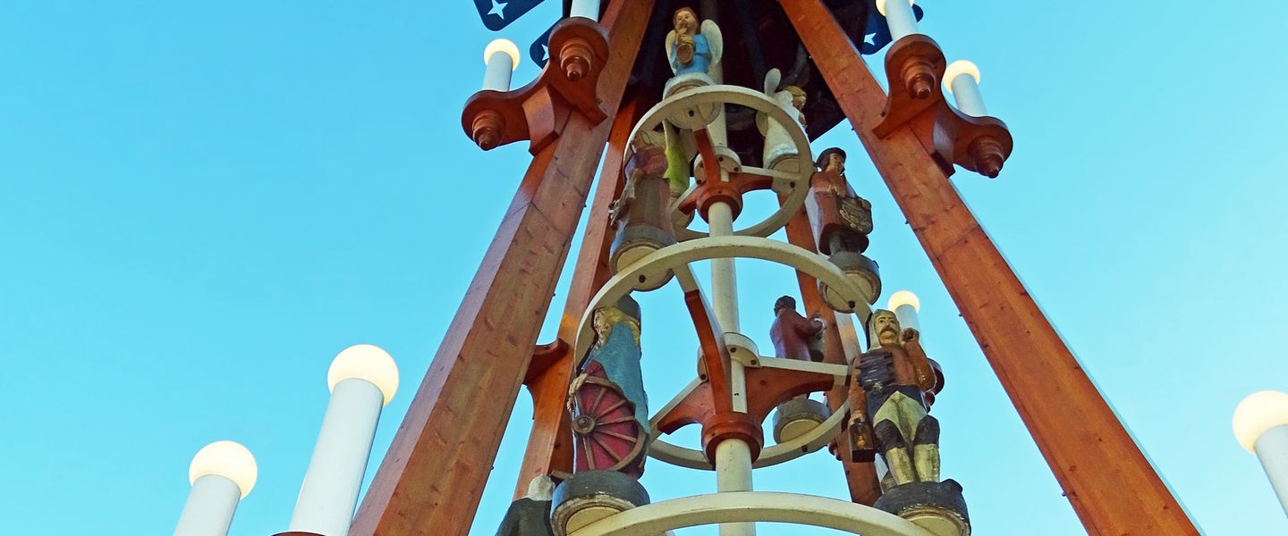 Das Erzgebirge – Heimat der Lichter, lebendiger Bräuche und Traditionen. Große Pyramiden zieren viele Marktplätze. Es erwarten Sie winterliche Landschaften, Lichterglanz, Kerzenduft, Weihnachtsstollen und Glühwein.